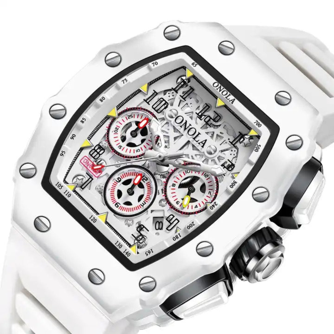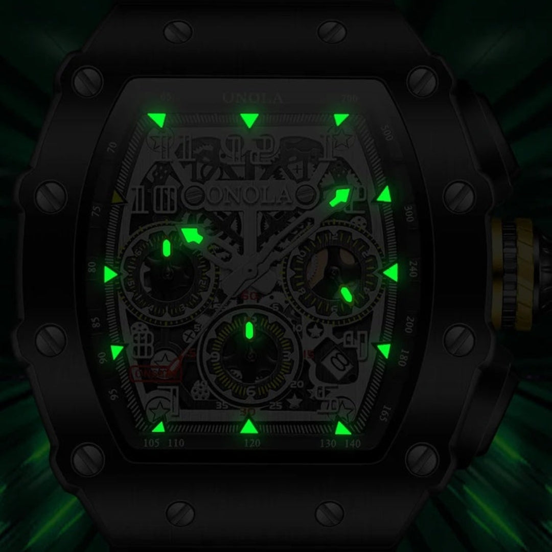 Conçue pour les hommes exigeants, alliant prestige et performance, la montre chronographe à quartz ONOLA est bien plus qu'un simple accessoire : elle incarne l'appartenance à un univers de raffinement et de puissance. Avec son boîtier tonneau audacieux, ses détails lumineux et son mouvement à quartz d'une précision irréprochable, ce garde-temps est pensé pour sublimer chaque instant.